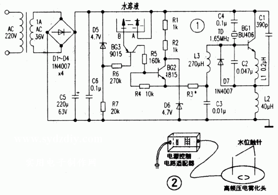 | 选择分类:当前分类——实用电路 相关联或者相类似的文章: 物理学的前沿--弦理论(10) 引导还是教唆?——某些儿童用品电(9) 五一单片机导购以及光盘大合并!(6) 多频超声波发生器(5) 用AVR单片单片机建立实验应用全过程(4) 新型调频发射芯片MAX2606(4) RegExp正则表达示用法(3) 简单的RS232C电平转换和串口取电(-7) TDA2030A装的18W单声道功放板(-8) USB接口器件PDIUSBD12的接口应用设计(-10) 图示均衡器的使用技巧(-14) 推荐在别站发贴内容的例子!(-18) 二极管的特性与应用 (-20) 一款不易破坏的报警器(-21) Hi-Fi功放设计要点(-34) 盲目试验 损失超百元(-38) 120MHz 2051 频率计 (-42) 光电耦合器的应用(-46) 双声道功率放大器(-46) 看看别人在本站下的订单(-47) 首页 前页 后页 尾页 本站推荐: | 多用途超声波微型雾化器 作者:新力 来源:《电子报》|成都 笔者介绍一种多用途的超声波雾化器。该雾化器具有以下特点:分体式,即超声雾化头与电源和电路部分完全分离;便携式,体积小、即插即用、设有自保功能;高可靠,可全天候工作;雾化量大,与别墅的山水盆景配套可发生云雾缭绕的动感;特别适合过分干燥的环境对空气加湿,以利人的呼吸;在水中加入适量的某种溶剂,给被污染的居住环境消毒,以预防疾病(如把生活用醋定时雾化,可预防流感);雾化器(成品)售价低、性价比高,欲自制雾化器,仅器材和工时费也难敌上述的性价比。 1、 本站不保证以上观点正确,就算是本站原创作品,本站也不保证内容正确。 2、如果您拥有本文版权,并且不想在本站转载,请书面通知本站立即删除并且向您公开道歉! |