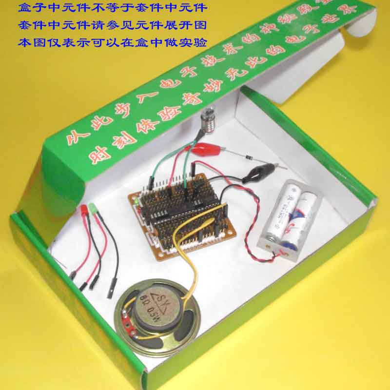 套件中有电阻、电容、二极管、三极管等,只要能看得懂中文汉字就可以做以上实验,可以学习到电阻对电流的阻碍作用、电容的充放电作用、二极管的单向导电性等等各种电子元件的有关知识。