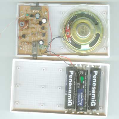 6、套件中已经有电路原理图,制作注意事项,问题解决方法等说明。最后要说明的是:一个人买的话,建议买两套,否则,只有一套的话,你就会只能自己一个人讲没有人收听,而你又收不到别人讲话。当然,你可以自由改动发挥,很容易再做成一个小功放、超再生收音机(改线圈)、喊话器(加1元钱的话筒)、断线报警器、电子小喇叭等,当然,这些就请大家自己再参考《电子报》《北京电子报》《无线电》《电子世界》《家电维修》《电子文摘》《广东电子》《家庭电子》……