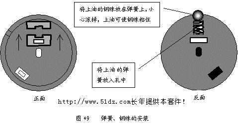 将加上润滑油的弹簧放入电刷旋钮的小孔中(见图49),钢珠黏附在弹簧的上方,是、注意切勿丢失。